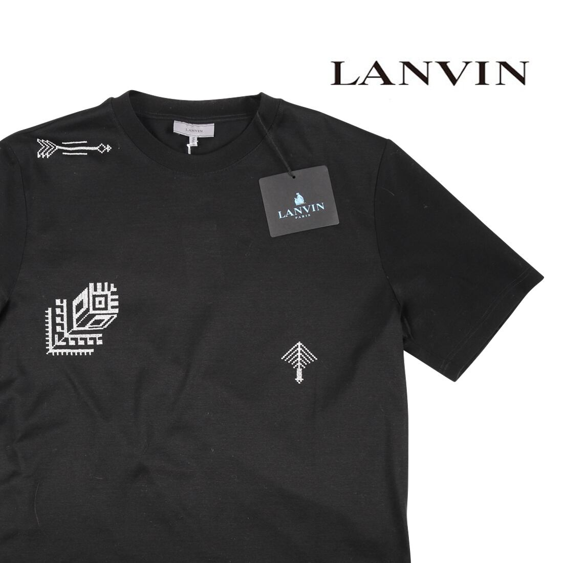 LANVIN(ランバン) Uネック半袖Tシャツ T-SHIRT BRODERIES APPLIQU ブラック 15155