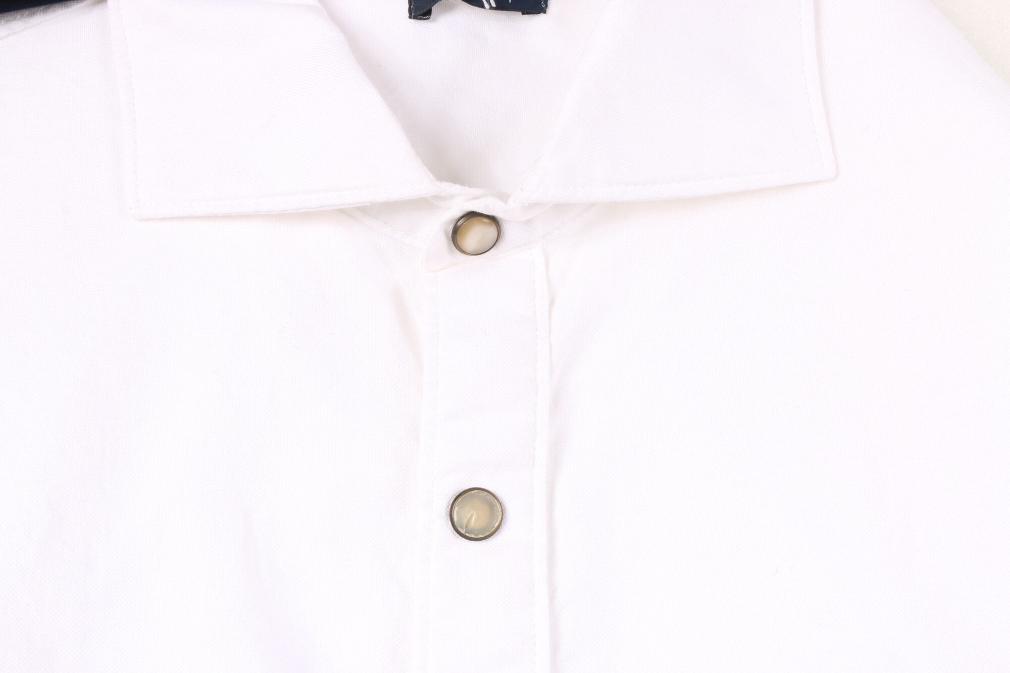 白シャツはトレンドに左右されず、手軽に清潔感を打ち出すことができるのが特徴です。こちらは他にはないボタンがアクセントとなってくれますね。