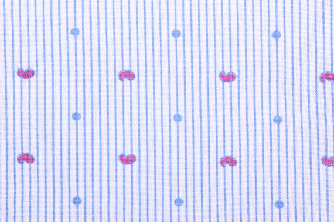 ストライプ×ピンクとブルーのモチーフが合わさって、1枚でもジャケットやカーディガンのインに合わせても存在感バツグンです!