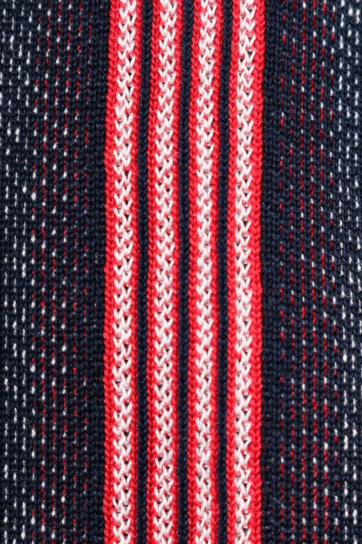 インパクトのあるストライプ柄ですが、合わせるボトムスをシンプルなものにするとバランス良くまとまり、コーディネートを格上げしてくれます。