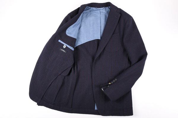 一見シンプルなネイビージャケットに見えますが、実はストライプ。洗練された雰囲気が漂い、着ている人をワンランク上のステージに引き上げてくれそうですね。